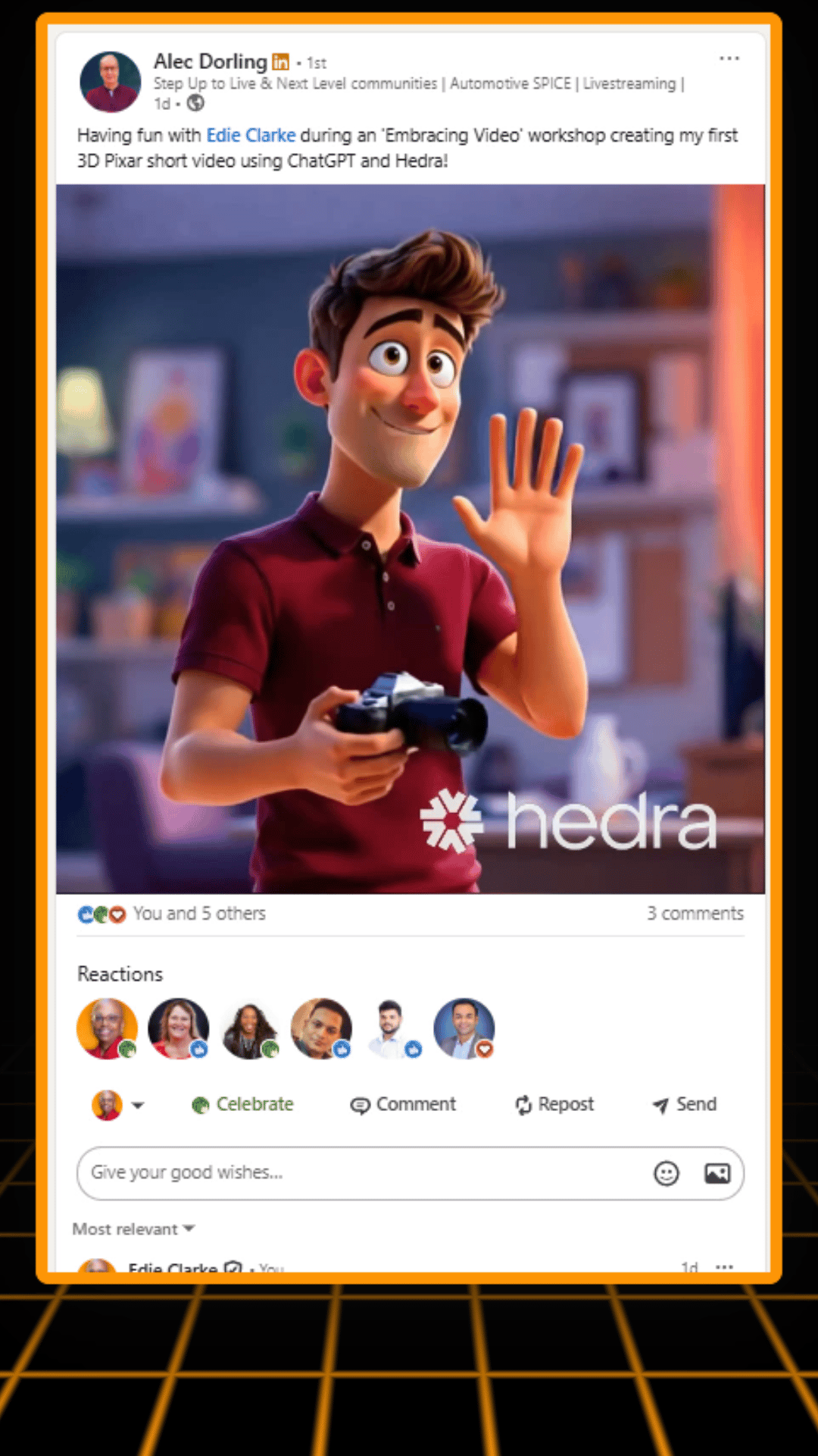 Hello Reader, Last month, a client named Alec joined one of my visibility workshops. He’s 75. Retired. Starting a new chapter. Click to Watch But he said something I hear all the time: “I want to share what I know… I just don’t want to be on camera.” Two hours later, Alec had a Pixar-style animated version of himself.Same voice. Same wisdom.None of the camera anxiety. He posted it that same day. And the response?“Love this format.”“Never thought I could do this.” Here’s what that moment...